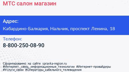 МТС, салон-магазин по адресу Кабардино-Балкария, Нальчик, проспект Ленина, 18 в дальнейшем Организация, размещена в следующих категориях: