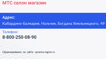 МТС, салон-магазин по адресу Кабардино-Балкария, Нальчик, Богдана Хмельницкого, 49 в дальнейшем Организация, размещена в следующих категориях:
