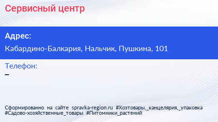 Сервисный центр по адресу Кабардино-Балкария, Нальчик, Пушкина, 101 в дальнейшем Организация, размещена в следующих категориях:
