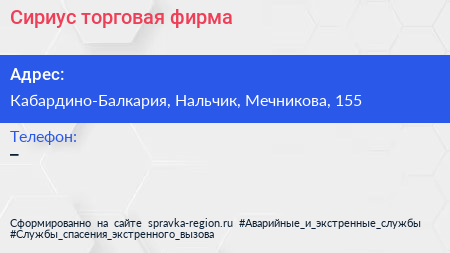 Сириус, торговая фирма по адресу Кабардино-Балкария, Нальчик, Мечникова, 155 в дальнейшем Организация, размещена в следующих категориях: