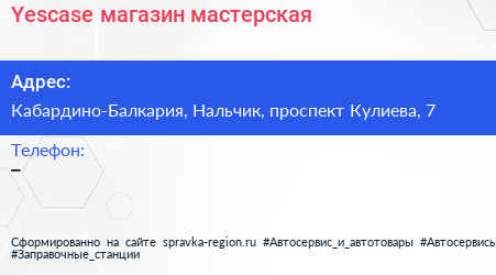 Yescase, магазин-мастерская по адресу Кабардино-Балкария, Нальчик, проспект Кулиева, 7 в дальнейшем Организация, размещена в следующих категориях: