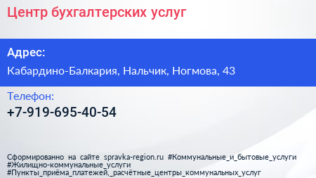 Центр бухгалтерских услуг по адресу Кабардино-Балкария, Нальчик, Ногмова, 43 в дальнейшем Организация, размещена в следующих категориях: