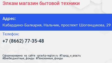 Элкам, магазин бытовой техники по адресу Кабардино-Балкария, Нальчик, проспект Шогенцукова, 29 в дальнейшем Организация, размещена в следующих категориях: