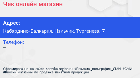 Чек онлайн, магазин по адресу Кабардино-Балкария, Нальчик, Тургенева, 7 в дальнейшем Организация, размещена в следующих категориях:
