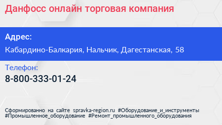 Данфосс-онлайн, торговая компания по адресу Кабардино-Балкария, Нальчик, Дагестанская, 58 в дальнейшем Организация, размещена в следующих категориях: