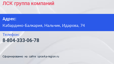 ЛСК, группа компаний по адресу Кабардино-Балкария, Нальчик, Идарова, 74 в дальнейшем Организация, размещена в следующих категориях: