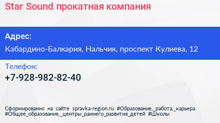 Star Sound, прокатная компания по адресу Кабардино-Балкария, Нальчик, проспект Кулиева, 12 в дальнейшем Организация, размещена в следующих категориях: