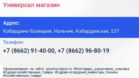 Универсал, магазин по адресу Кабардино-Балкария, Нальчик, Кабардинская, 157 в дальнейшем Организация, размещена в следующих категориях: