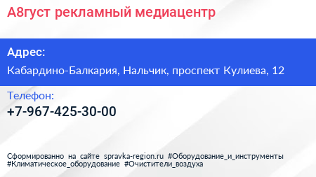 А8густ, рекламный медиацентр по адресу Кабардино-Балкария, Нальчик, проспект Кулиева, 12 в дальнейшем Организация, размещена в следующих категориях: