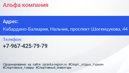 Альфа, компания по адресу Кабардино-Балкария, Нальчик, проспект Шогенцукова, 44 в дальнейшем Организация, размещена в следующих категориях: