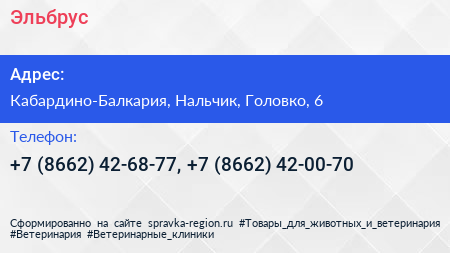 Эльбрус по адресу Кабардино-Балкария, Нальчик, Головко, 6 в дальнейшем Организация, размещена в следующих категориях: