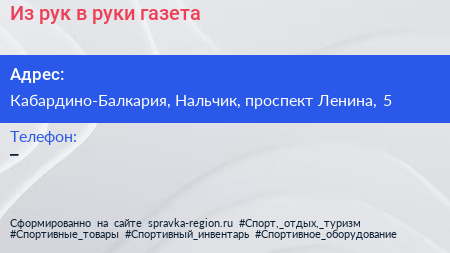 Из рук в руки, газета по адресу Кабардино-Балкария, Нальчик, проспект Ленина, 5 в дальнейшем Организация, размещена в следующих категориях:
