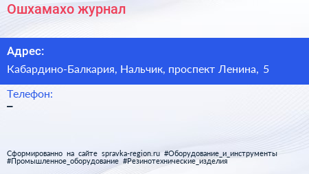 Ошхамахо, журнал по адресу Кабардино-Балкария, Нальчик, проспект Ленина, 5 в дальнейшем Организация, размещена в следующих категориях: