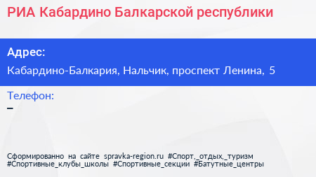 РИА Кабардино-Балкарской республики по адресу Кабардино-Балкария, Нальчик, проспект Ленина, 5 в дальнейшем Организация, размещена в следующих категориях: