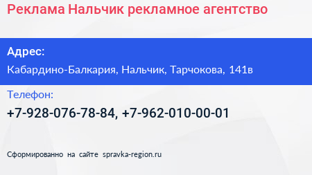Реклама Нальчик, рекламное агентство по адресу Кабардино-Балкария, Нальчик, Тарчокова, 141в в дальнейшем Организация, размещена в следующих категориях: