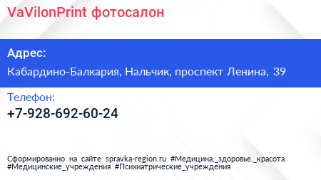 VaVilonPrint, фотосалон по адресу Кабардино-Балкария, Нальчик, проспект Ленина, 39 в дальнейшем Организация, размещена в следующих категориях: