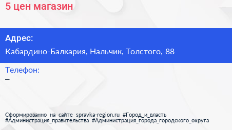 5 цен, магазин по адресу Кабардино-Балкария, Нальчик, Толстого, 88 в дальнейшем Организация, размещена в следующих категориях: