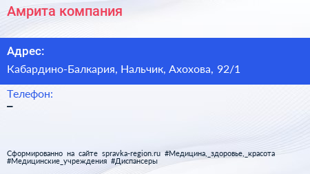 Амрита, компания по адресу Кабардино-Балкария, Нальчик, Ахохова, 92/1 в дальнейшем Организация, размещена в следующих категориях: