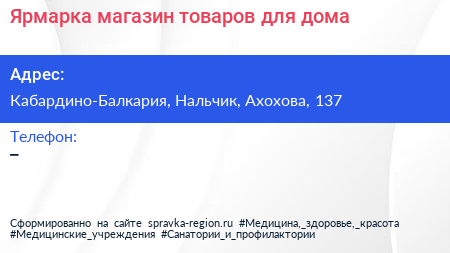 Ярмарка, магазин товаров для дома по адресу Кабардино-Балкария, Нальчик, Ахохова, 137 в дальнейшем Организация, размещена в следующих категориях: