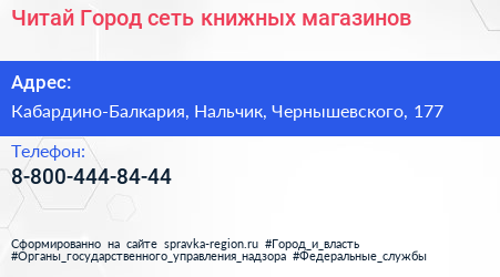 Читай-Город, сеть книжных магазинов по адресу Кабардино-Балкария, Нальчик, Чернышевского, 177 в дальнейшем Организация, размещена в следующих категориях:
