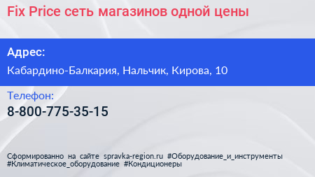Fix Price, сеть магазинов одной цены по адресу Кабардино-Балкария, Нальчик, Кирова, 10 в дальнейшем Организация, размещена в следующих категориях: