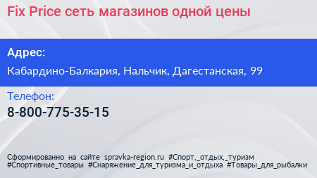 Fix Price, сеть магазинов одной цены по адресу Кабардино-Балкария, Нальчик, Дагестанская, 99 в дальнейшем Организация, размещена в следующих категориях: