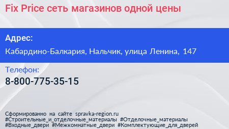 Fix Price, сеть магазинов одной цены по адресу Кабардино-Балкария, Нальчик, улица Ленина, 147 в дальнейшем Организация, размещена в следующих категориях: