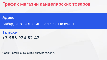 График, магазин канцелярских товаров по адресу Кабардино-Балкария, Нальчик, Пачева, 11 в дальнейшем Организация, размещена в следующих категориях: