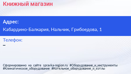 Книжный магазин по адресу Кабардино-Балкария, Нальчик, Грибоедова, 1 в дальнейшем Организация, размещена в следующих категориях: