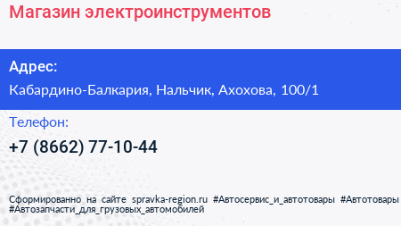 Магазин электроинструментов по адресу Кабардино-Балкария, Нальчик, Ахохова, 100/1 в дальнейшем Организация, размещена в следующих категориях:
