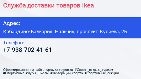 Служба доставки товаров Ikea по адресу Кабардино-Балкария, Нальчик, проспект Кулиева, 2Б в дальнейшем Организация, размещена в следующих категориях: