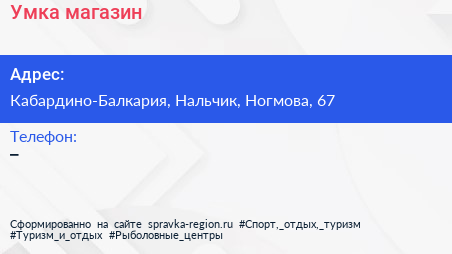 Умка, магазин по адресу Кабардино-Балкария, Нальчик, Ногмова, 67 в дальнейшем Организация, размещена в следующих категориях:
