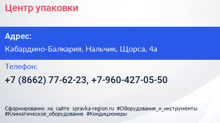 Центр упаковки по адресу Кабардино-Балкария, Нальчик, Щорса, 4а в дальнейшем Организация, размещена в следующих категориях: