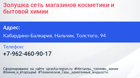 Золушка, сеть магазинов косметики и бытовой химии по адресу Кабардино-Балкария, Нальчик, Толстого, 94 в дальнейшем Организация, размещена в следующих категориях: