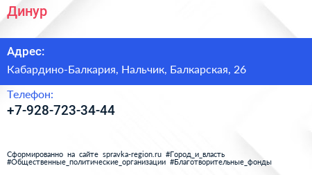 Динур по адресу Кабардино-Балкария, Нальчик, Балкарская, 26 в дальнейшем Организация, размещена в следующих категориях: