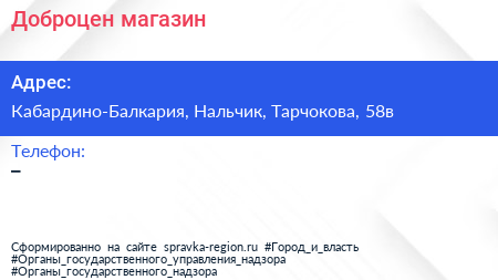 Доброцен, магазин по адресу Кабардино-Балкария, Нальчик, Тарчокова, 58в в дальнейшем Организация, размещена в следующих категориях: