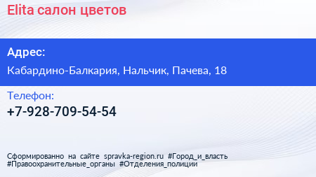 Elita, салон цветов по адресу Кабардино-Балкария, Нальчик, Пачева, 18 в дальнейшем Организация, размещена в следующих категориях: