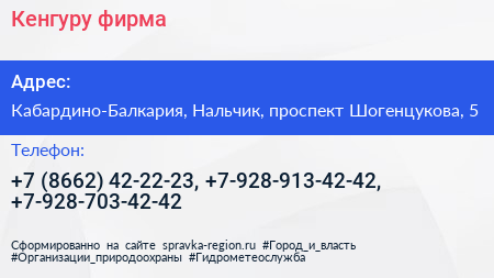 Кенгуру, фирма по адресу Кабардино-Балкария, Нальчик, проспект Шогенцукова, 5 в дальнейшем Организация, размещена в следующих категориях: