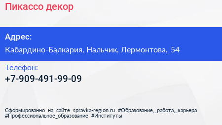 Пикассо декор по адресу Кабардино-Балкария, Нальчик, Лермонтова, 54 в дальнейшем Организация, размещена в следующих категориях: