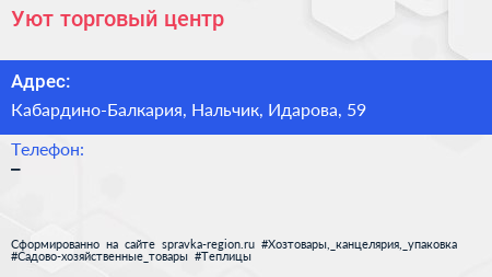 Уют, торговый центр по адресу Кабардино-Балкария, Нальчик, Идарова, 59 в дальнейшем Организация, размещена в следующих категориях: