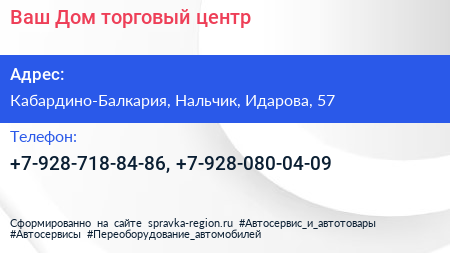 Ваш Дом, торговый центр по адресу Кабардино-Балкария, Нальчик, Идарова, 57 в дальнейшем Организация, размещена в следующих категориях: