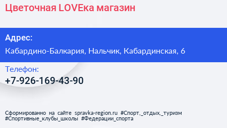 Цветочная LOVEка, магазин по адресу Кабардино-Балкария, Нальчик, Кабардинская, 6 в дальнейшем Организация, размещена в следующих категориях: