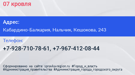 Адрес: Кабардино-Балкария, Нальчик, Кабардинская, 213