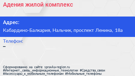 Адения, жилой комплекс по адресу Кабардино-Балкария, Нальчик, проспект Ленина, 18а в дальнейшем Организация, размещена в следующих категориях: