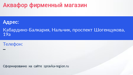 Аквафор, фирменный магазин по адресу Кабардино-Балкария, Нальчик, проспект Шогенцукова, 19а в дальнейшем Организация, размещена в следующих категориях: