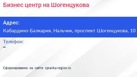 Бизнес-центр на Шогенцукова по адресу Кабардино-Балкария, Нальчик, проспект Шогенцукова, 10 в дальнейшем Организация, размещена в следующих категориях: