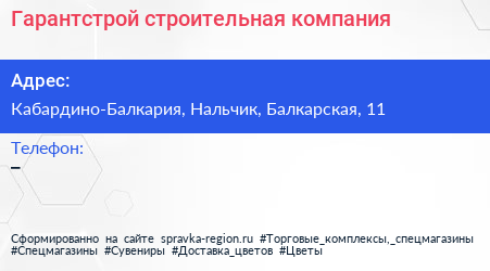 Гарантстрой, строительная компания по адресу Кабардино-Балкария, Нальчик, Балкарская, 11 в дальнейшем Организация, размещена в следующих категориях: