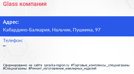 Glass, компания по адресу Кабардино-Балкария, Нальчик, Пушкина, 97 в дальнейшем Организация, размещена в следующих категориях: