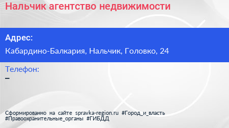 Нальчик, агентство недвижимости по адресу Кабардино-Балкария, Нальчик, Головко, 24 в дальнейшем Организация, размещена в следующих категориях:
