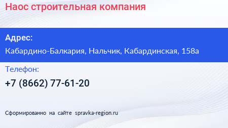 Наос, строительная компания по адресу Кабардино-Балкария, Нальчик, Кабардинская, 158а в дальнейшем Организация, размещена в следующих категориях: